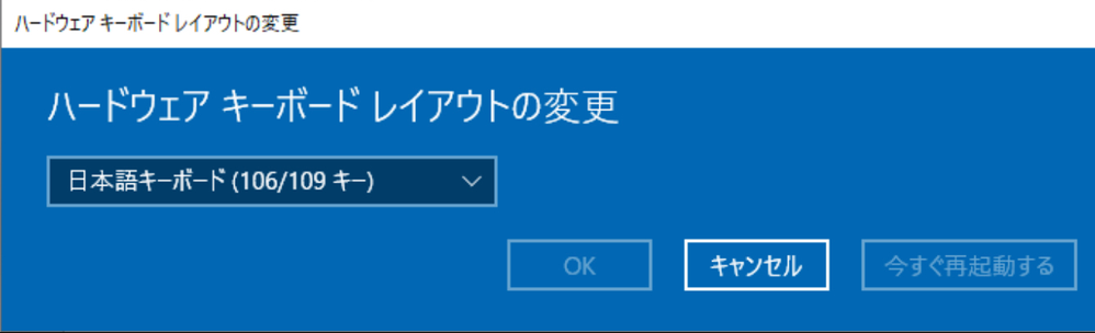 Hi. The hardware keyboard setting in Windows isJapanese keyboard (106/109 key)