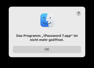 The message window says. The App "1Password 7.app" ist not open any more. Well, this I know. :-)