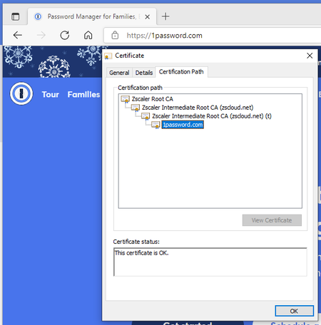 Using 1PW for families at work, our company is using zScaler for internet security. zScaler unbundles SSL and installs its own ssl cert towards the client (see picture). This breaks the sync engine, ...