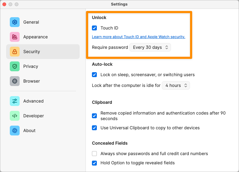 2 weeks,30 daysorNeverfor requiring your account password when you have Face ID or Touch ID turned on. Here's what to do:- Open and unlock 1Password.