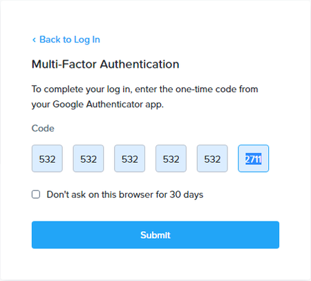When filling the 2FA challenge when logging in to my.nutanix.com, you are presented with 6 separate text boxes to enter each individual number for the code. 1Password fills the whole 6 digit code int...