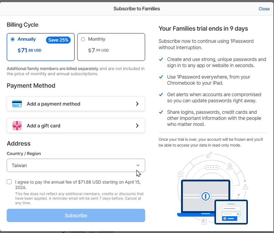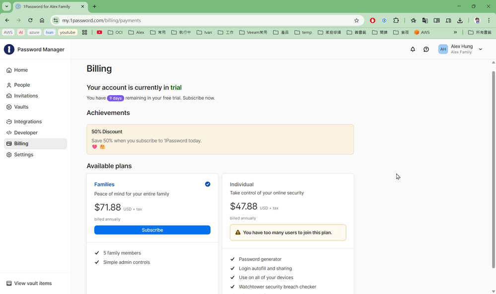 I still have 9 days on my free trial and would like to subscribe to the Families plan with the 50% discount before it expires. Could someone please look into this?