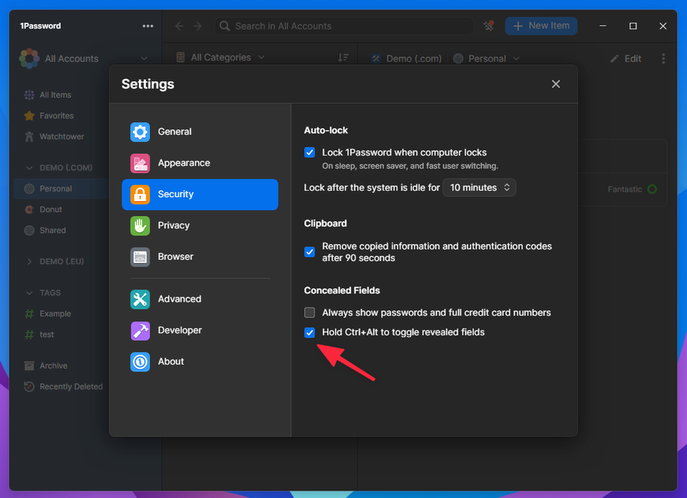 I tried all combinations of left/right Ctrl+Alt keys, but passwords are not revealed when I hit those combo's.