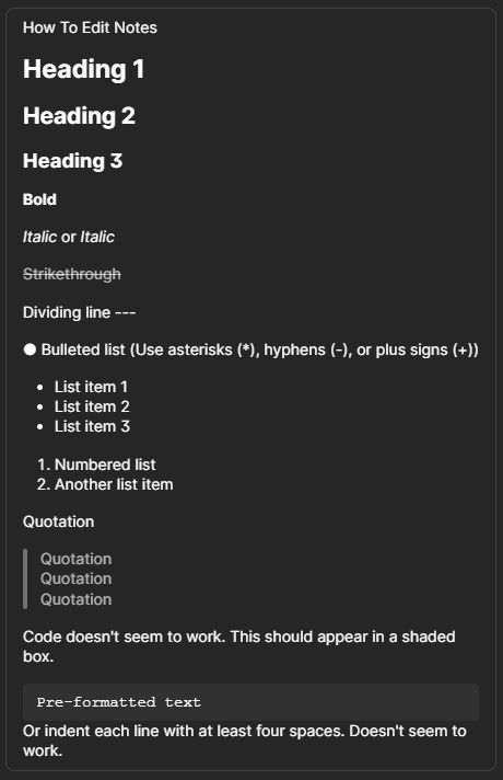 I'm using the 1P8 Windows app and trying out Secure Notes with Markdown but notice that Code and Pre-formatted Text (prefixed with 4 spaces) don't seem to work.