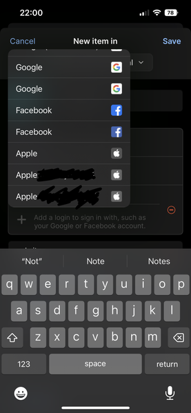 I was trying to create a new login on iOS. The new login was one that used "Sign in with". I created a field for it and clicked the option that allows me to choose the account that it uses for...