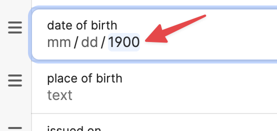 If you want to add a birth date using the 1P Birth Date field, manual entry is not allowed, you must click on the appropriate date on the pop-up calendar. The calendar for the Birth Date field pops up by default to today's date, i.e., 07/13/2024.