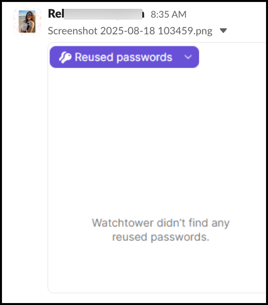 that same password and It did not show up under Reused Passwords in Watchtower before I