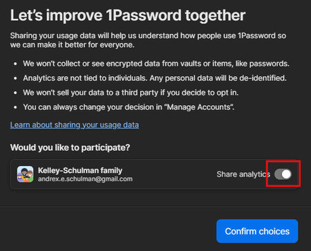 You can check your current settings by following the steps in this guide: How to share your usage data with 1Password
