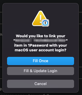 To choose another item to use, or to use that item in another app, open Quick Access by pressing ⇧⌘Space (Shift–Command–Space), find the item you want, then press ⇧↩ (Shift–Enter) to autofill it. You'll see a prompt asking if you just want to Fill Once, or you can link it to the item by choosing Fill & Update Login.