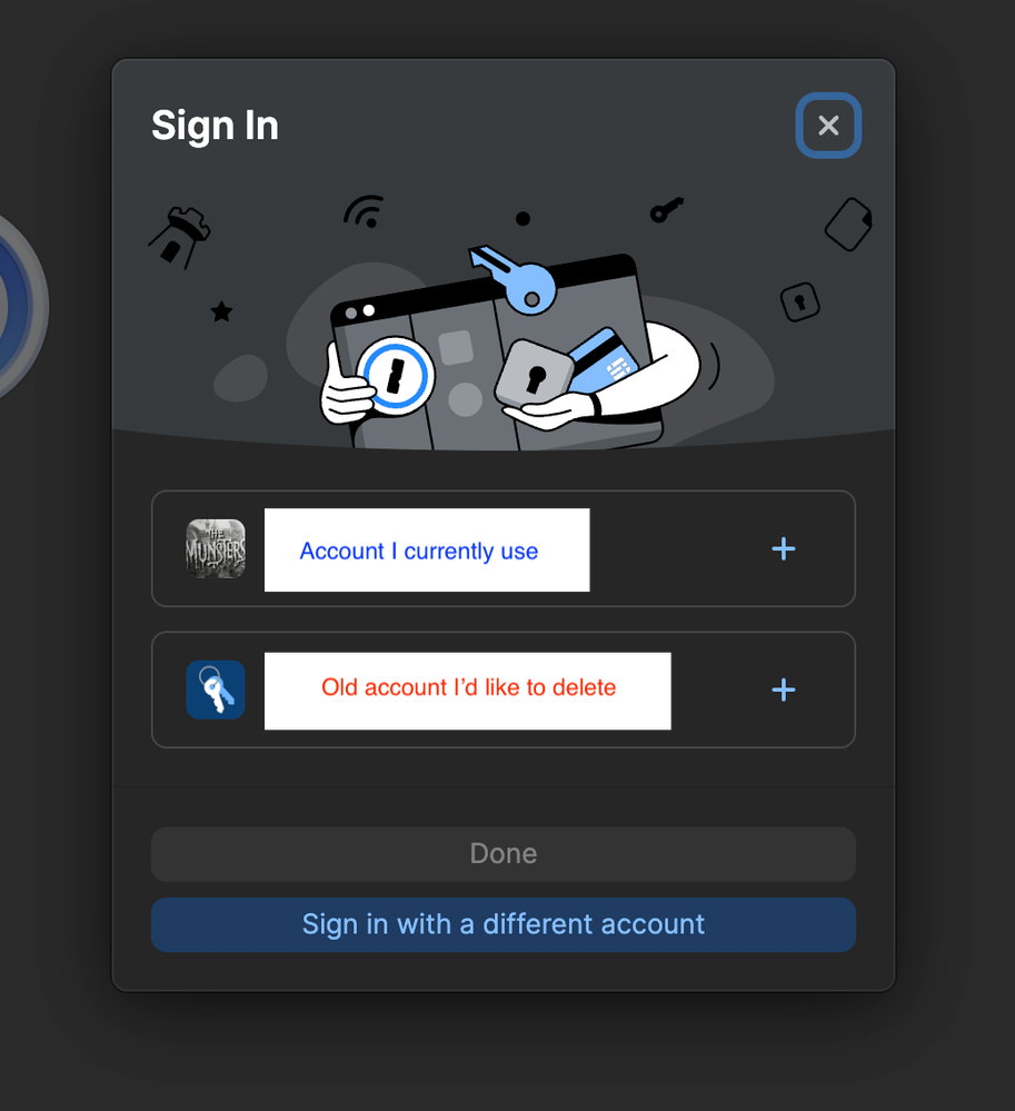 Hi, on a new installation of the 1P application for macOS, on the sign in screen I see 2 accounts, one I currently use and an old job account I'd like to delete. I have looked for other similar cases, but none refer to the macOS application sign in screen...