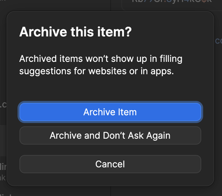 Hey ya'll! Choosing ␡asks for me to confirm archiving an item, which is great, but even choosing "Archive and Don't Ask Again", the confirmation continues appearing. Not the end of the world but felt...