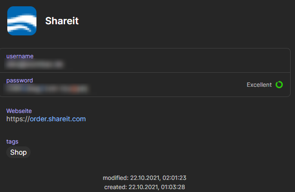 However, if I compare both entries, one entry classifies the password as "Excellent", the other entry with 100% the same password "Fantastic".