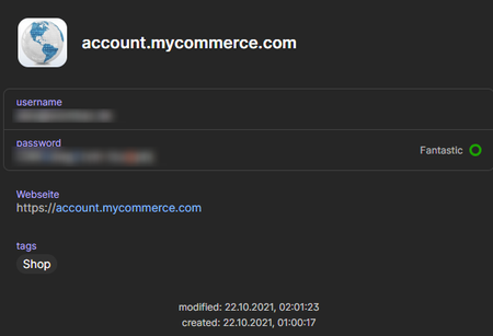 I created 2 entries of the same account, with different website names. One entry was created at account creation and a generated password from 1Password was used.