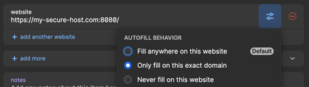 Autofill behavior when "only fill on this exact domain" is selected (host:port matching)
