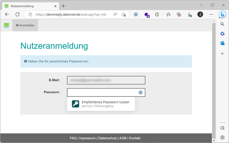 Autofill dosn't work on DATEV E-Mail Decryption Portal
