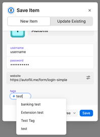 autofill for tags not working when adding new login item from browser