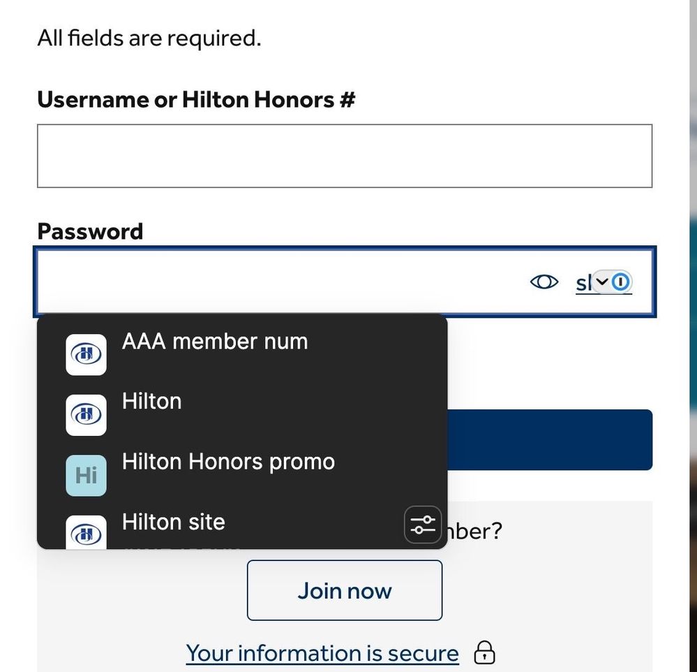 Autofill on Hilton website stopped?