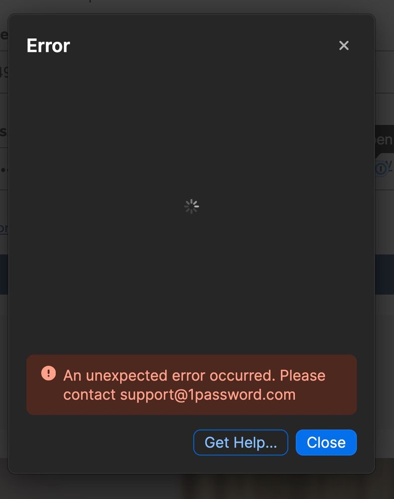 and another symptom. If I click on the 'save to 1password' button on the hilton login screen after I manually enter user/pw, get: