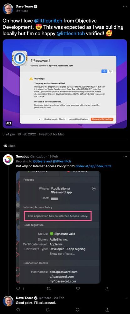 This release also includes an Internet Access Policy to declare and describe the internet connections we make. This is great as reverse firewall software can now show you the connections we're making and why. Here's how it looks like in action with Little Snitch: