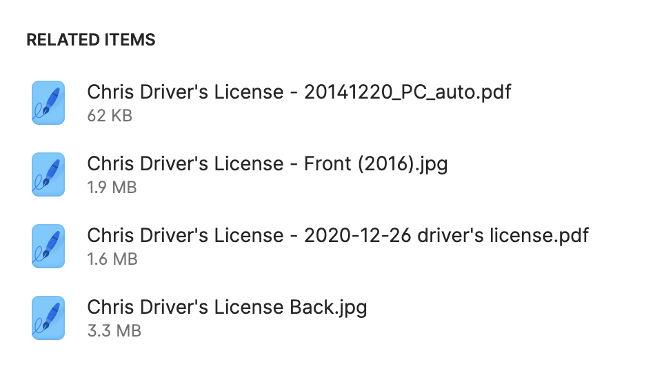 Of these "related items", can you tell which one I've archived so I no longer see it and download it, as I try to find a photo of my driver's license?