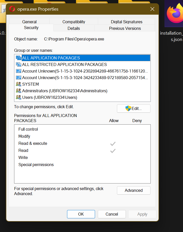 Opera is installed in C:\Program Files folder with admin permissions and not located in AppData folder. Opera does not trust Opera.exe. See screenshots:
