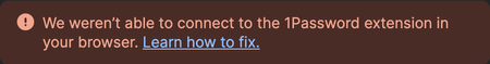 After working just fine forever, this morning I happened to look at 1Password Settings and saw this.