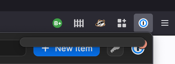 Clicking the to expand the menu within the Firefox for MacOS 1Password extension displays a broken pop-up menu. Occurs with every attempt, including after quitting and relaunching Firefox.