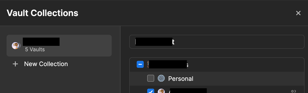 Thank you for the clarification, I looked intoCreate itemand you should only see yourPersonalvault as the suggestion if all the vaults on your collection are shared vaults and you do not have permission to create an item in any of those vaults.