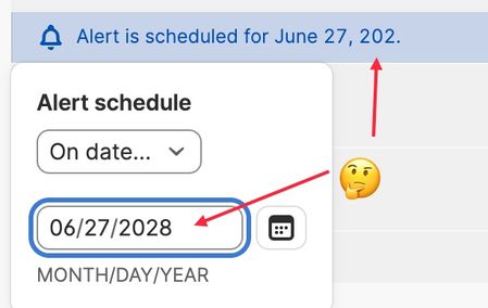 Entered a new software license just now that expires in three years so wanted to take advantage of the new 'set expiry alert' feature. I can't set a date (in June 2028) as the year only seems to all...
