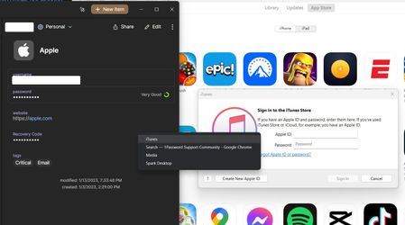 I have iTunes 12.6.5.3 installed. When I go to the login screen there and try to use 1Password's "Type in Window" option, it doesn't do anything. I installed Apple TV Preview app from MS Store, and t...