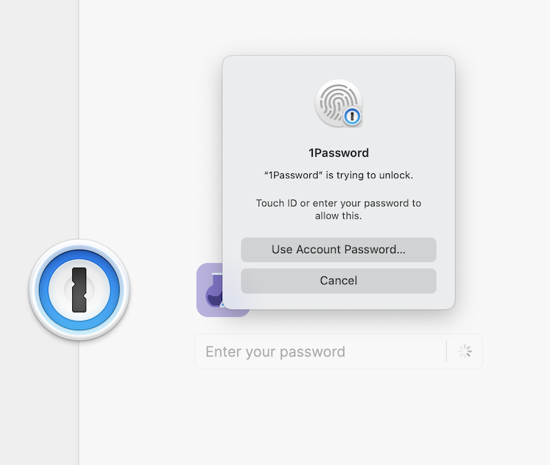 The dialog to unlock 1Password with either Touch ID or a password is out of focus when opening the app. Instead, the app's primary window takes focus.