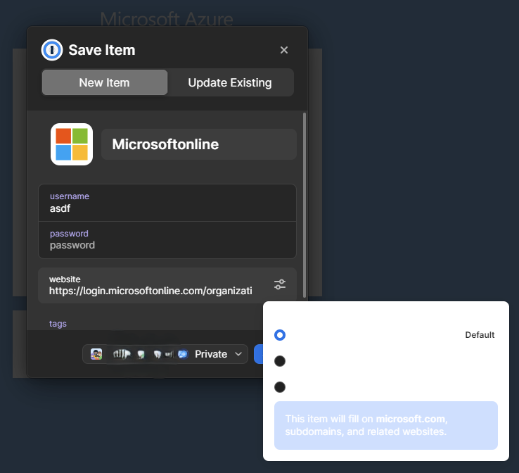 This only happens when you are entering the login/password on a prompt and you select "Save in 1Password". I don't notice this when using the app or accessing the browser extension button.