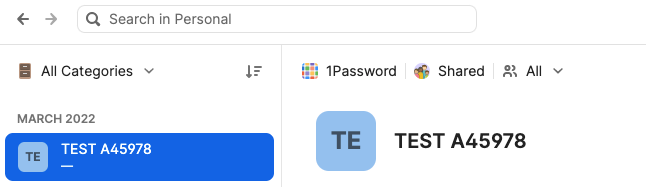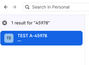 - Create an entry with the name "TEST A45978", to trigger the bug, the name has to have a number on it but with letters attached