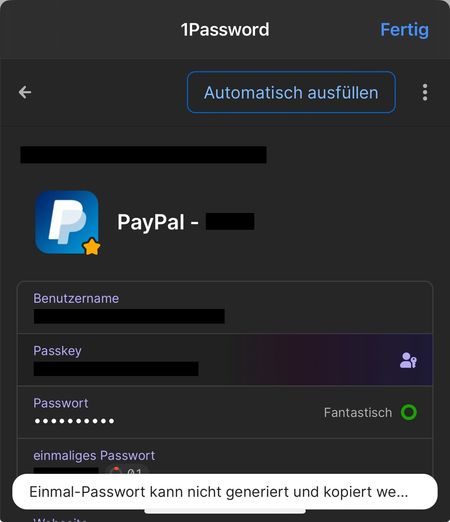 2 years agoThank you for the report and the workaround. I've filed an issue with our development team so that they can investigate and improve 1Password's behaviour on the PayPal website in the future. I'm sorry for the inconvenience.