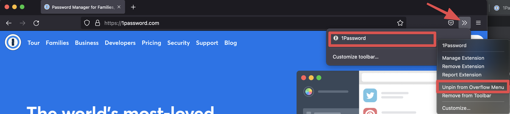 After suffering the automatic update hang/crash/permission cycle for a while I've finally managed to get 1Password7 working again. As a part of my "quit everything that moves" debugging strategy I removed the 1Password extension from Firefox. I see that there are two extensions available now and I am trying to reinstall the classic one. The installation of the classic 1Password extension on Firefox (93.0) seems to have been successful and Firefox confirms that it is running. However there is no 1Password icon in the Firefox toolbar. I have also looked on the Firefox "customize toolbar" page and there is no 1Password icon there either.
