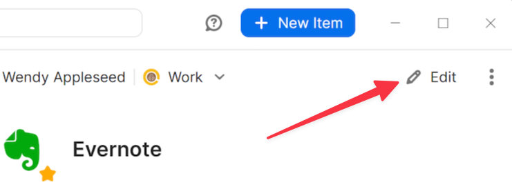 Do you see an edit button after you click on an item in the 1Password for Windows app: