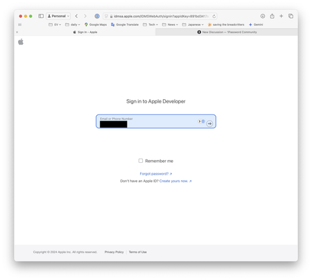 Cannot log in on developer.apple.com/download site with 1Password
