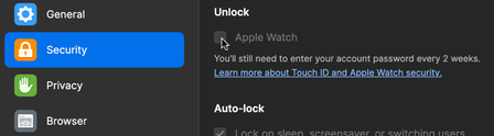 Can't check on Apple Watch in Preferences
