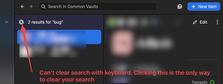 Once you've searched for an item and chosen to show all matches, there's no way to clear the search using the keyboard. Steps to reproduce: