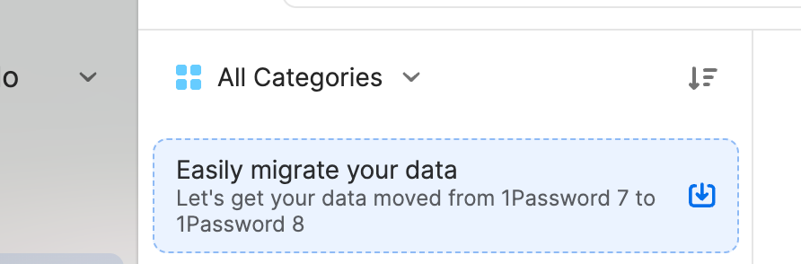 I have just downloaded version 8 on my iMac and opened an account. I have 1Password 7 on my iPhone and iPad and signed in. 1Password migrated my data from 1Password 7 to my account and 1Password 8 but now when I go to "All Items" there is the following text at the top with a download arrow:
