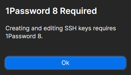 Hey @toneo, generating, importing, and sharing SSH keys requires the 1Password 8 desktop app. I recommend reviewing this via our documentation: https://developer.1password.com/docs/ssh/manage-keys/