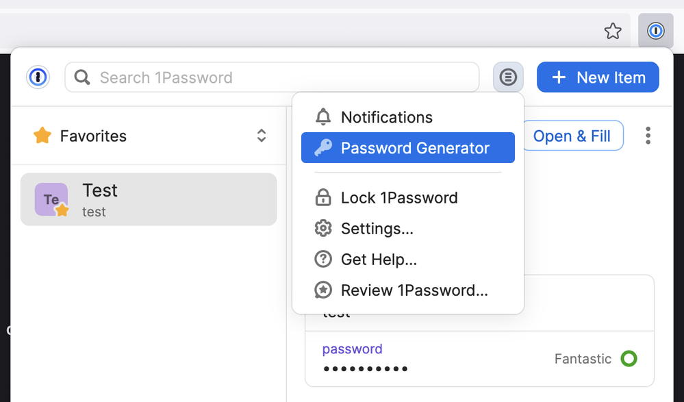 My Firefox 1Password menu bar button does not have "Password Generator" as described in the "Create a custom password" directions I found. Please direct me to useful user directions for 1 Password v. 8. If I can't make this app work, I'll have to abandon it.
