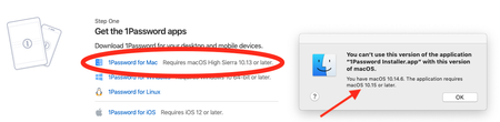 1Password 8 does require macOS High Sierra 10.15 or later. I've flagged this issue with the copy internally, so hopefully we can have it smoothed out sooner rather than later.