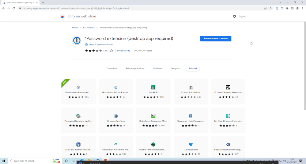 I just tried to use 1Password on my Windows desktop from my Chrome browser which I don't typically use. We were ordering movie tickets, I had selected the movie and showing and picked our seats and snacks, and I was about to pay when I clicked on the the 1Password icon in the tool bar to fill in my credit card information. When I did I got a screen that said "Looking for the 1Password helper" and gave me two choices: Try Again or Learn More.