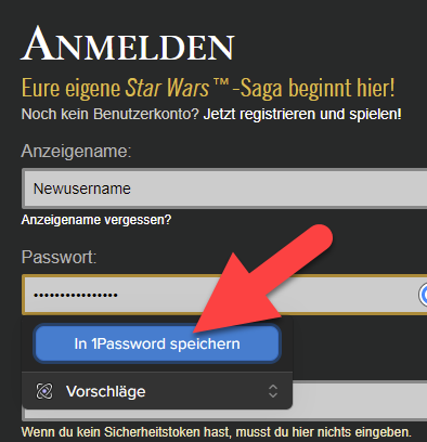 Can't use 1Password to login SWTOR