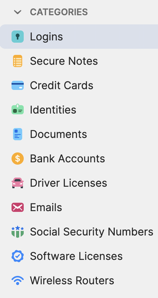 I have the following categories displayed on the left. Of the 22 possible categories available, I thought 1Password was supposed to display here only the categories in which I actually have data? Of ...