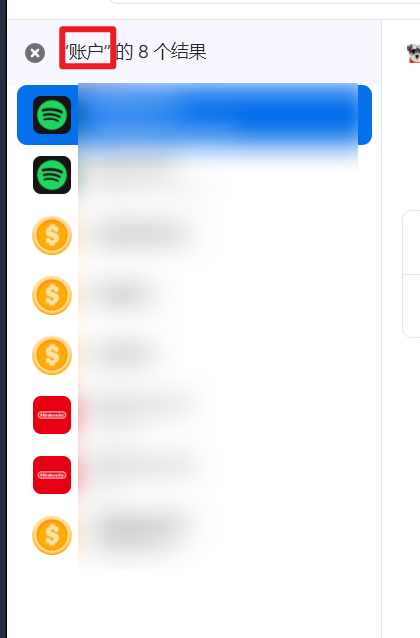 比如说这个,标题和备注中都包括 “账户”一词: