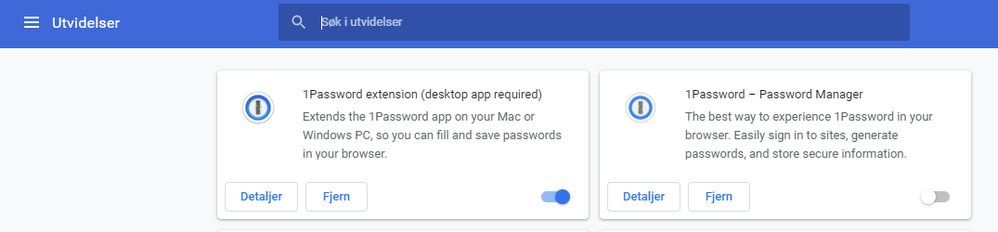 On another Mac I'm using the browser-only version and it fills out inline fields just fine, so that probably got me confused. Especially now that you no longer differentiate in naming between the two extensions in the Chrome Webstore, both called "1Password" (the "for desktop" postfix just confuses TBH). I have both extensions installed in Chrome (since I am syncing extensions between computers) and toggle them on/off depending on whether or not the computer has the native version or not.