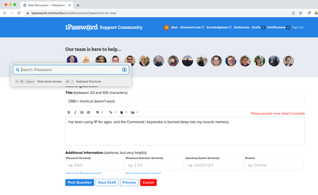 I've been using 1P for ages, and the Command-\ keystroke is burned deep into my muscle memory.