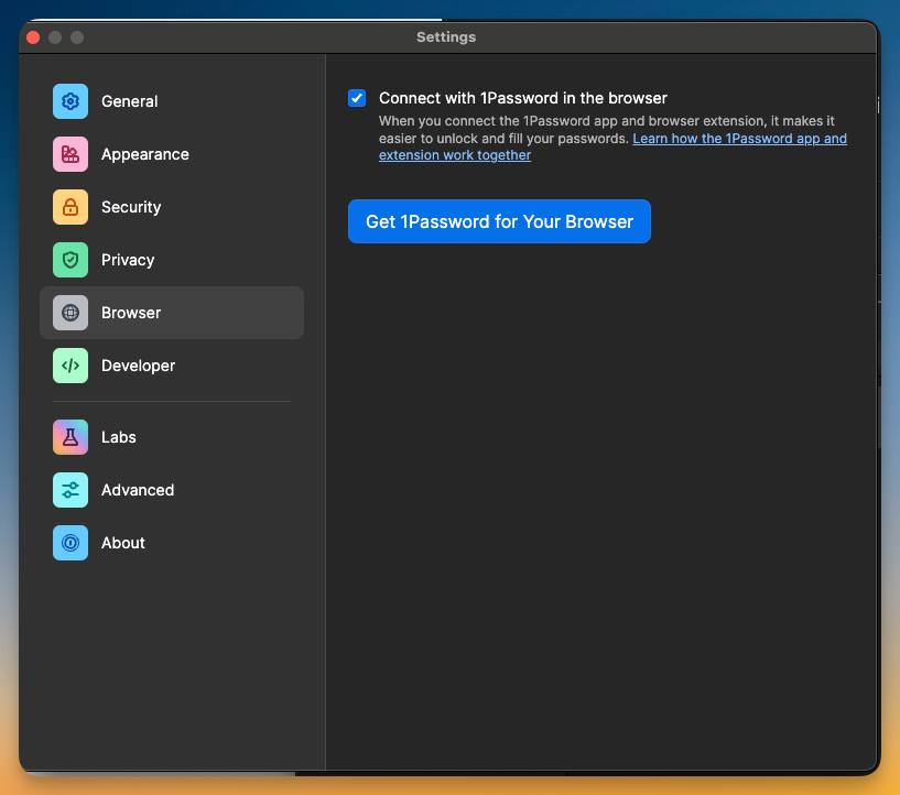 Apologies for not being more specific! The Add Browser option can be found in the Browser section of the settings in 1Password desktop app on Mac.